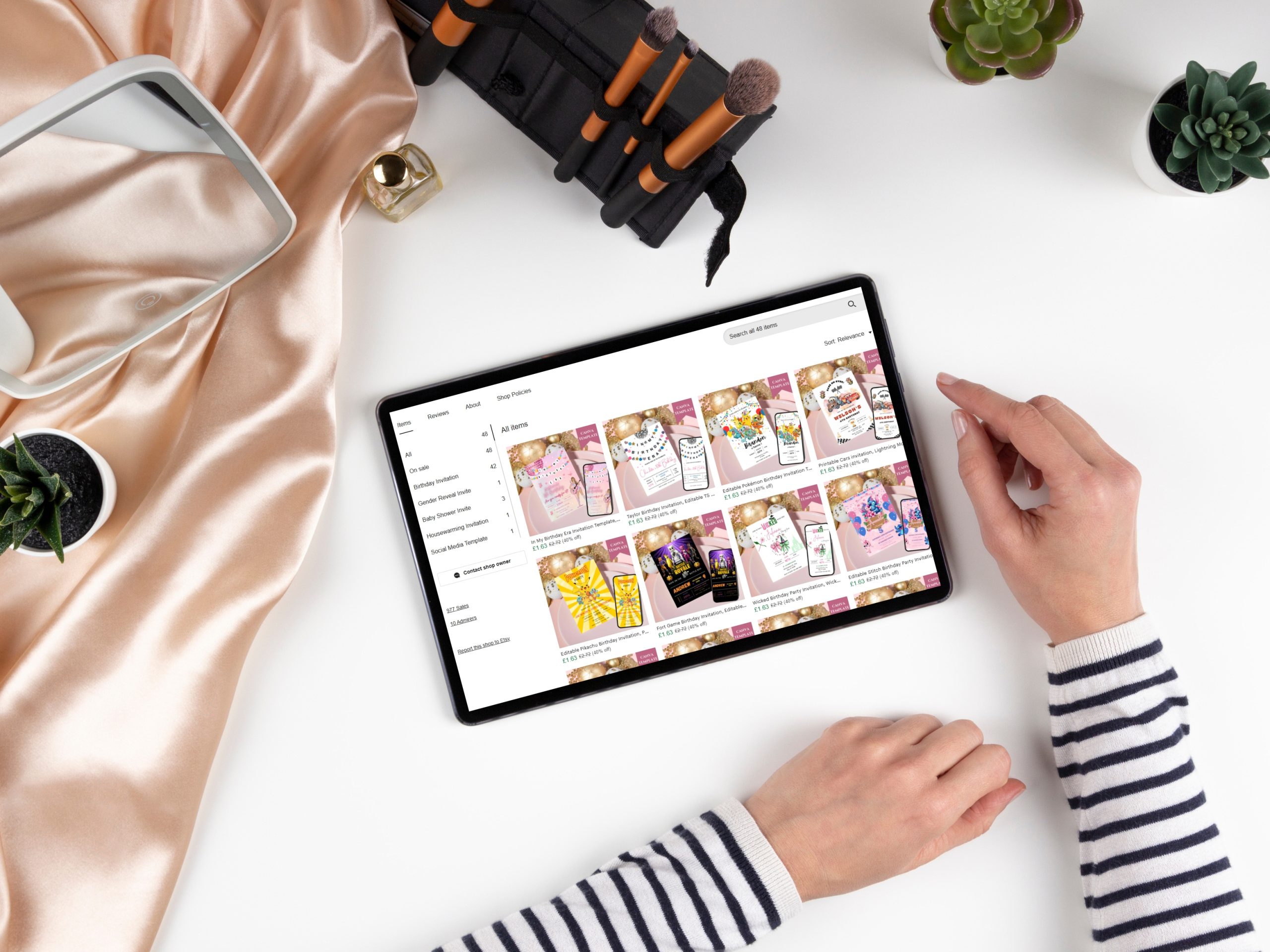 - Created branded visuals and mockups for Etsy listing images, optimized for mobile viewing and searchability.